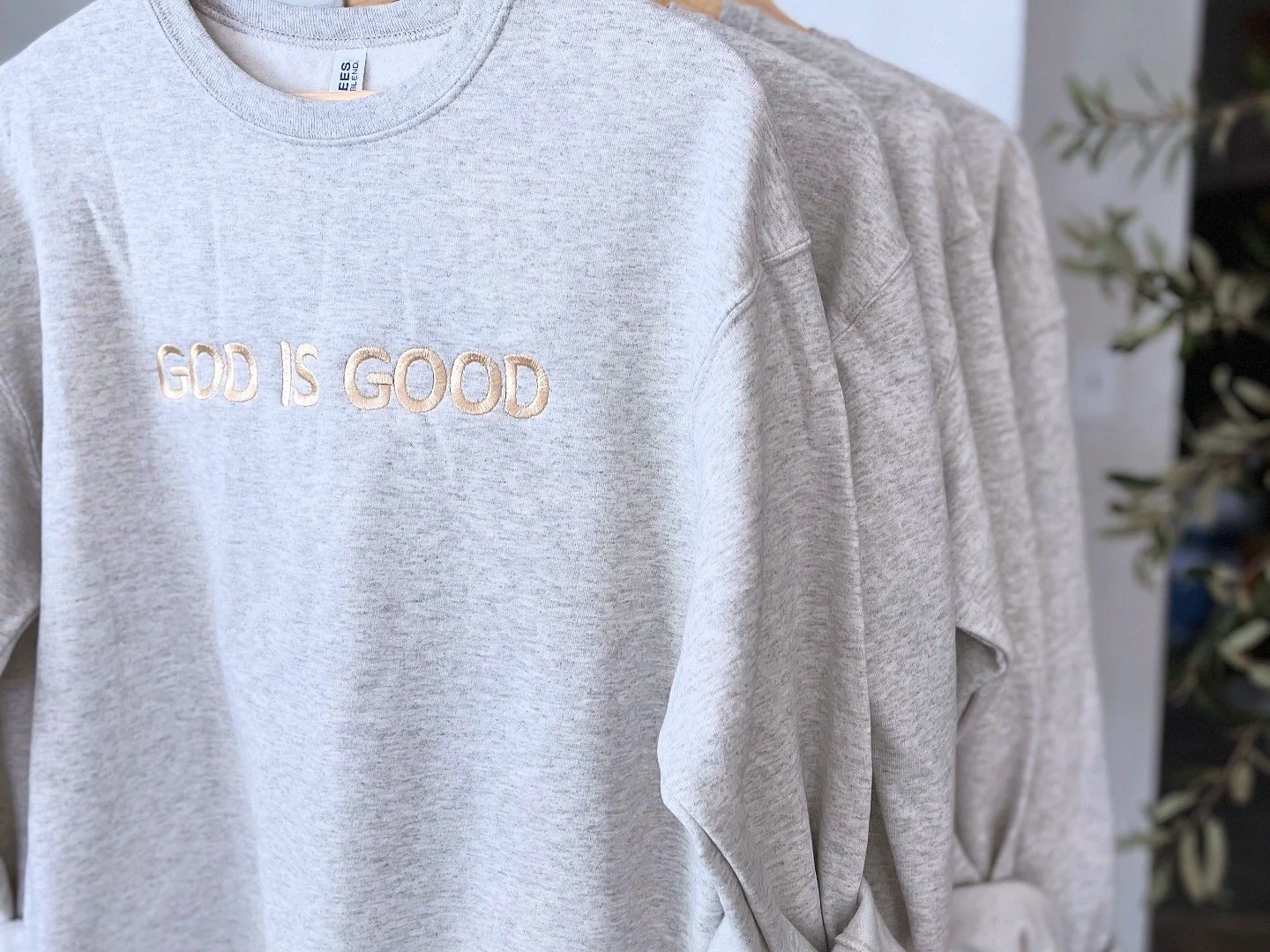 The "God is Good" embroidered sweatshirt serves as a warm and inviting reminder of faith and comfort. Crafted from soft, high-quality materials, it ensures a cozy fit perfect for any occasion. Whether you're lounging at home, attending a casual gathering, or running errands, this sweatshirt encapsulates a message of positivity and reassurance. Wear it as a statement of your beliefs and as a daily reminder of the goodness that surrounds us. Its versatile design makes it suitable for both adults and older kids, allowing the whole family to express their faith in style. Embrace comfort and spirituality with this essential piece in your wardrobe.
